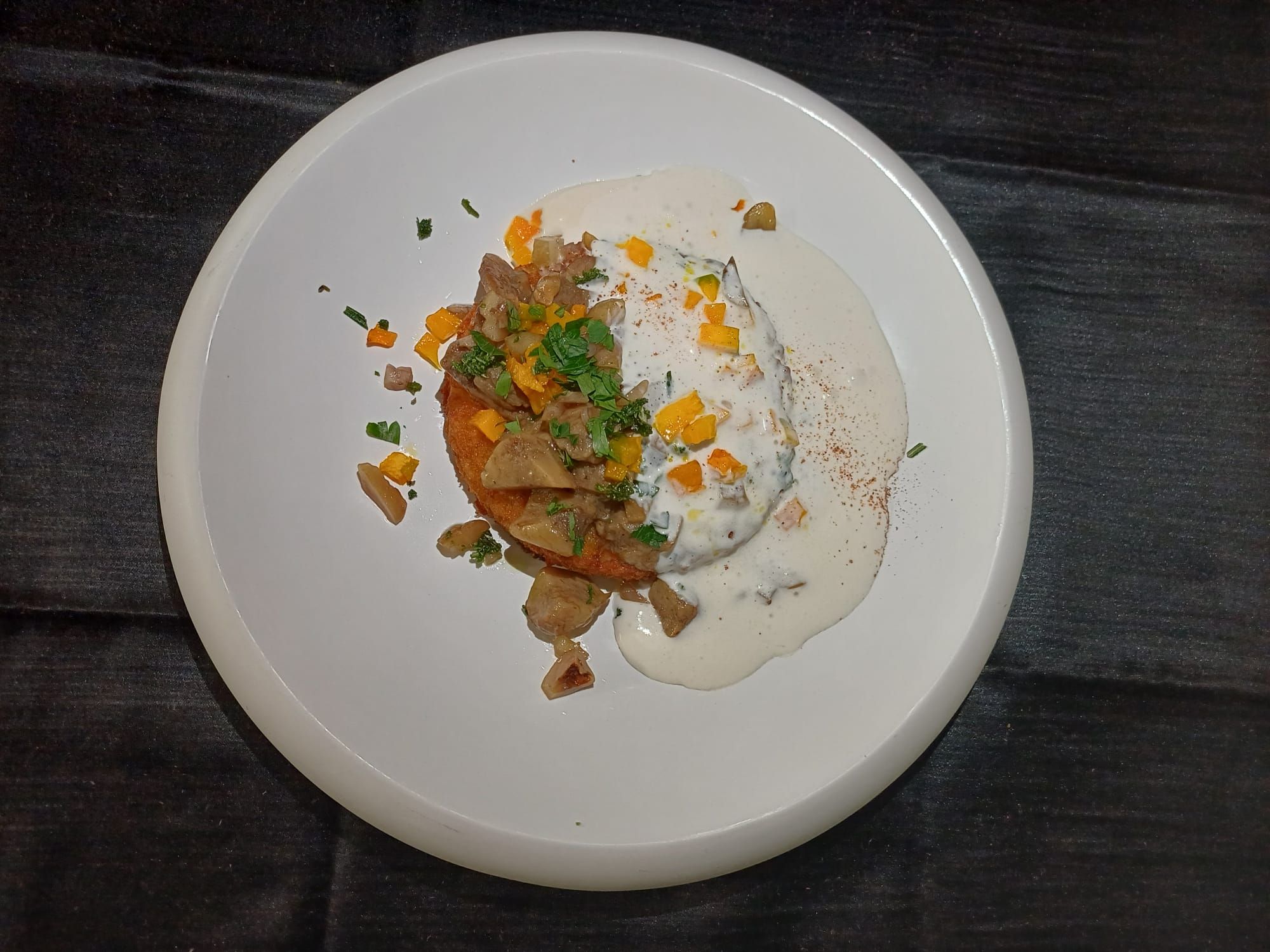 Gnocchi with semolina flour and Montereale potatoes, amassed by hand. With sauce, with bacon, cream and pecorino wafer
